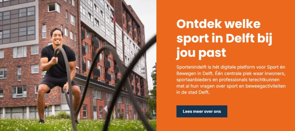 Sportenindelft.nl is hét digitale platform voor Sport én Bewegen in Delft. Één centrale plek waar inwoners, sportaanbieders en professionals terechtkunnen met al hun vragen over sport en beweegactiviteiten in de stad Delft.